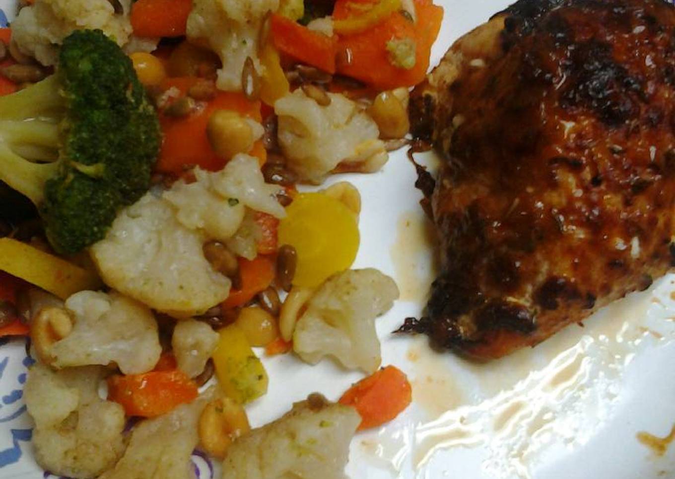 Roasted, Spiced, and herb crusted chicken with buttery vegetables