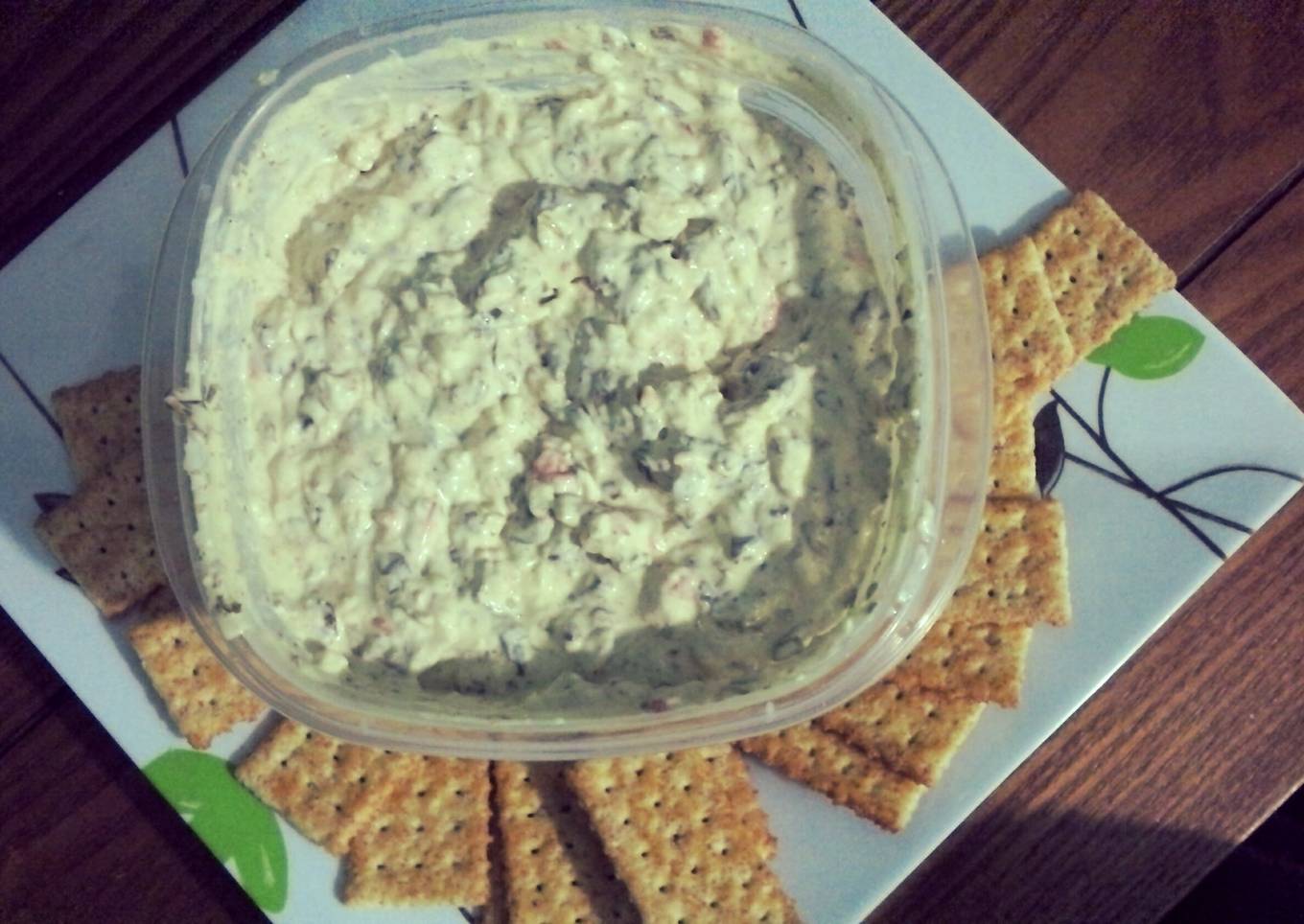 - Add the garlic, mix well. Then add the Tostitos spinach dip and mix until everything is well incorporated. Chill in the fridge before using for 2-3 hours or overnight. Serve with any type of crackers or veggies you like.